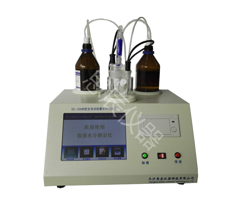 本儀器是我公司研發的第三代采用卡爾—費休庫侖電量法的微量水分測定儀。在一分鐘內快速測定出各類液體中的水分含量。樣品測定過程由儀器自動控制,攪拌、測定60秒左右自動完成,直接顯示測定結果;全封閉的滴定系統,避免了試劑對操作人員的危害;與其配套的500ml卡氏試劑,可連續測定1200次左右樣品等顯著優點,避免了其他方法測定水含量過程中產生的過大誤差,從而提高產品的質量指標。符合標準GB/T7600《運行中變壓器油水分含量測定法(庫侖法)》 GB6283《化工產品中水分含量的測定卡爾費休法(通用方法)》 SH/T0246《輕質石油產品中水含量測定法(電量法)》和SH/T0255《添加劑和含添加劑潤滑油水分測定法(電量法)》 GB/T11133《液體石油產品中水含量測定方法(卡爾費休法)》和 GB/T7380《表面活性劑含水量量的測定(卡爾費休法)》 GB10670《工業用氟代甲烷類中微量水分的測定卡爾費休法》以及 GB/T606《化學試劑水分測定通用方法卡爾費休法》GB/T8350《變性燃料乙醇》和 GB/T8351《車用乙醇汽油》 GB/T3776.1《農藥乳化劑水分測定法》以及GB/T6023《工業用丁二烯中微量水分的測定卡爾費休庫侖法》 GB/T3727《工業用乙烯、丙烯中微量水的測定》和 GB/T7376《工業用氟代烷烴中微量水分的測定》 GB/T18619.1《天然氣中水含量的測定卡爾費休-庫侖法》GB/T512《潤滑脂水分測定法》和 GB/T1600-《農藥水分測定方法》 GB/T11146《原油水含量測定法(卡爾費休庫侖法)》 GB/T12717《工業用乙酸酯類試驗方法》 GB/T5074《焦化產品水分測定方法》GB/T18826《工業用1,1,2-四氟乙烷(HFC-134a)》 ,廣泛應用于化工、石油、電力、科研、鐵路、教育等行業用于測量各種液體。具有測量精度高、速度快、測定數據穩定可靠等優點,可快速測定醇類、油類、脂類、醚類 、酯類、酸類、烷類、胺類、有機溶劑、農藥、酚類、原料產品的水分含量。